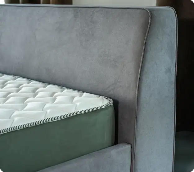 За кажущейся легкостью скрывается исключительная надежность. Кровать собрана на прочных болтовых соединениях и установлена на металлические опоры с покрытием "черный муар" (высота 60 мм), гарантируя устойчивость и долгий срок службы. Основание обеспечивает идеальную поддержку матраса (заглубление 65 мм) для вашего комфортного сна. Просвет над полом в 55 мм облегчает уборку, а оптимальная высота края царги (335 мм) позволяет с удобством садиться и вставать. Изголовье надежно закреплено на пластиковой опоре (15 мм), а его ширина создает удобную импровизированную полочку для мелочей. Обратная сторона выполнена из основной ткани, подтверждая внимание к деталям и качеству исполнения (Габариты: спальное место 160х200 см, общие - 173х237 см, высота изголовья 91 см).